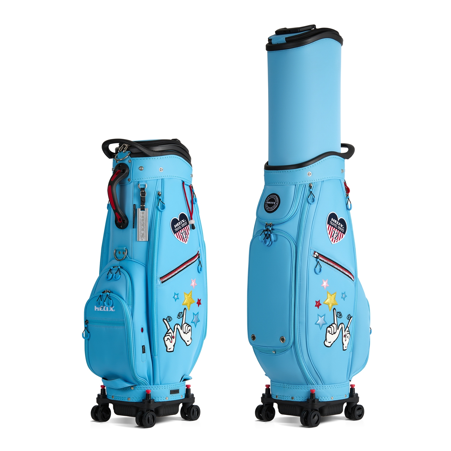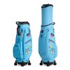 Upgrade your golf game with this stylish light blue nylon cart bag, designed for organization, protection, and ease of use. Whether you're riding or walking, the smooth-rolling wheels, retractable cover, and ample storage make every round more enjoyable. The detachable shoulder strap adds versatility, while the lightweight yet durable nylon ensures long-lasting performance.