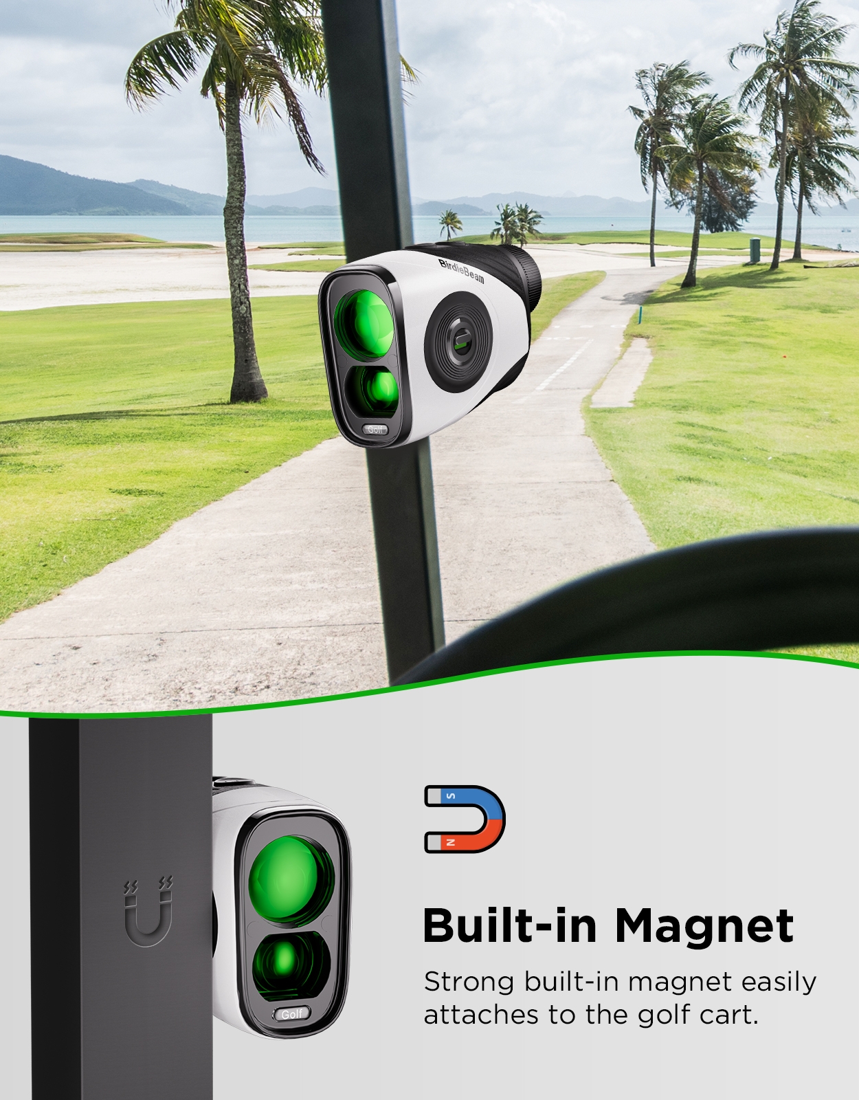 - Compact size with built-in magnet for easy access: measuring just 4.31in × 2.90in × 1.69in, this rangefinder is compact and easy to carry. a strong built-in magnet allows secure attachment to golf carts for quick, one-handed access during play.