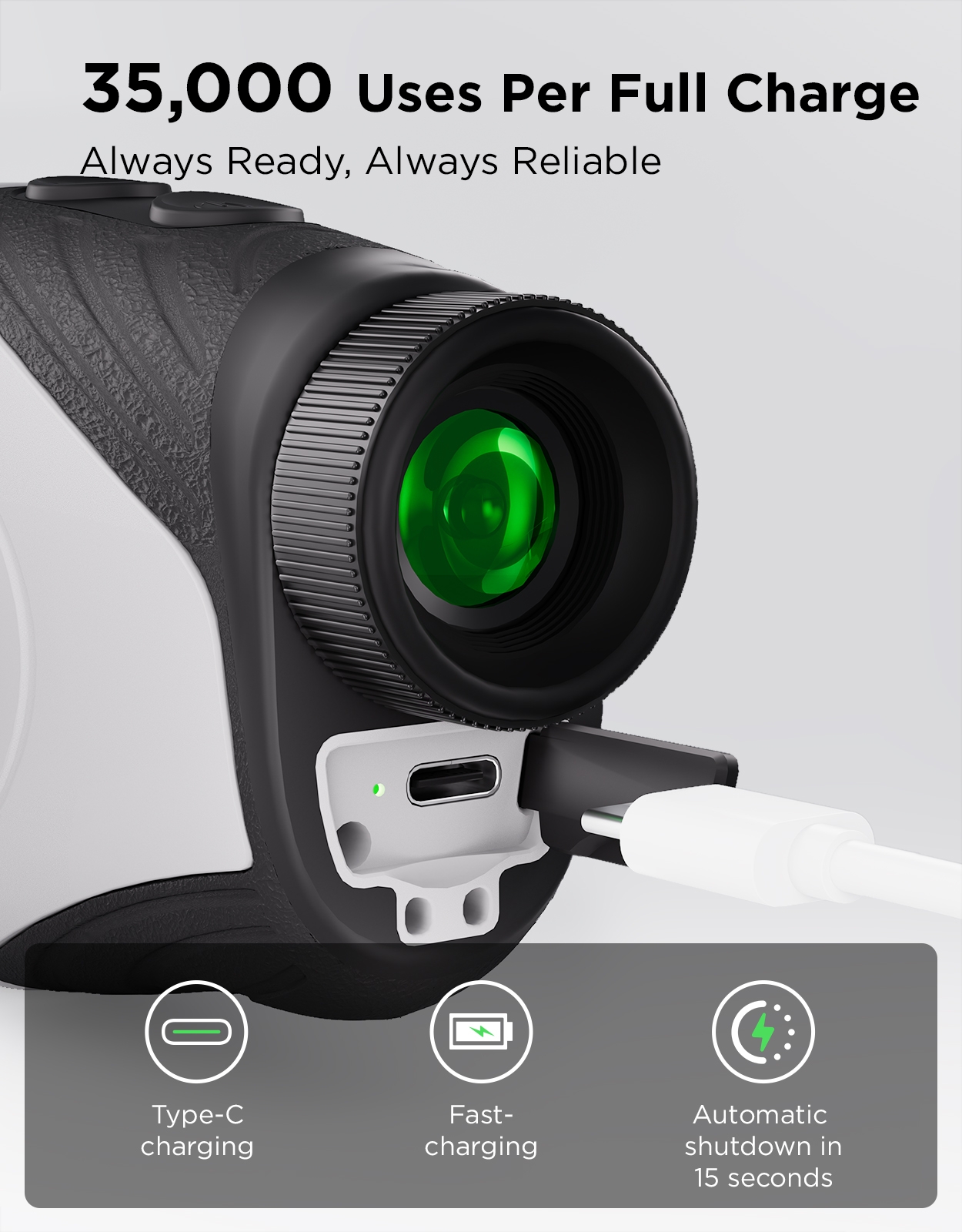- In finder mode with flag lock & vibration: press and hold the power button to scan across the background and flag. quickly locks onto the flag with vibration feedback - fast, easy, and reliable. even with shaky hands or low visibility, you’ll get fast, confident distance readings for every shot.