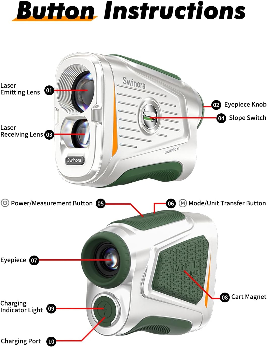 - Simple golf modes: designed for both beginners and seasoned golfers, this rangefinder features just two intuitive modes: straight-line mode for accurate yardage and flag lock mode that vibrates to confirm the pin (within 250y). tap to switch modes, then long-press the power button to activate—no complex menus or distractions.