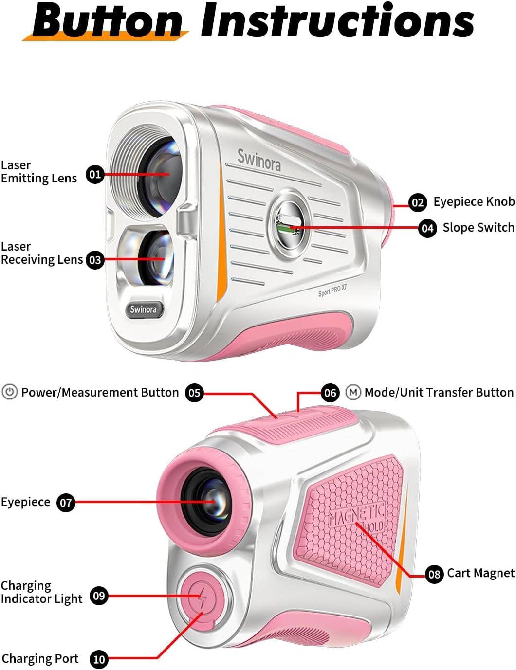 - Simple golf modes: designed for both beginners and seasoned golfers, this rangefinder features just two intuitive modes: straight-line mode for accurate yardage and flag lock mode that vibrates to confirm the pin (within 250y). tap to switch modes, then long-press the power button to activate—no complex menus or distractions.