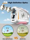 - 1300y accuracy + 7x zoom: this golf rangefinder with slope delivers +/-0.3 yard precision from 3 to 1300 yards. the anti-glare 7x lens and ultra-clear lcd display provide sharp visuals even in bright daylight. built-in slope switch makes it tournament legal, while still offering true slope compensation when enabled.