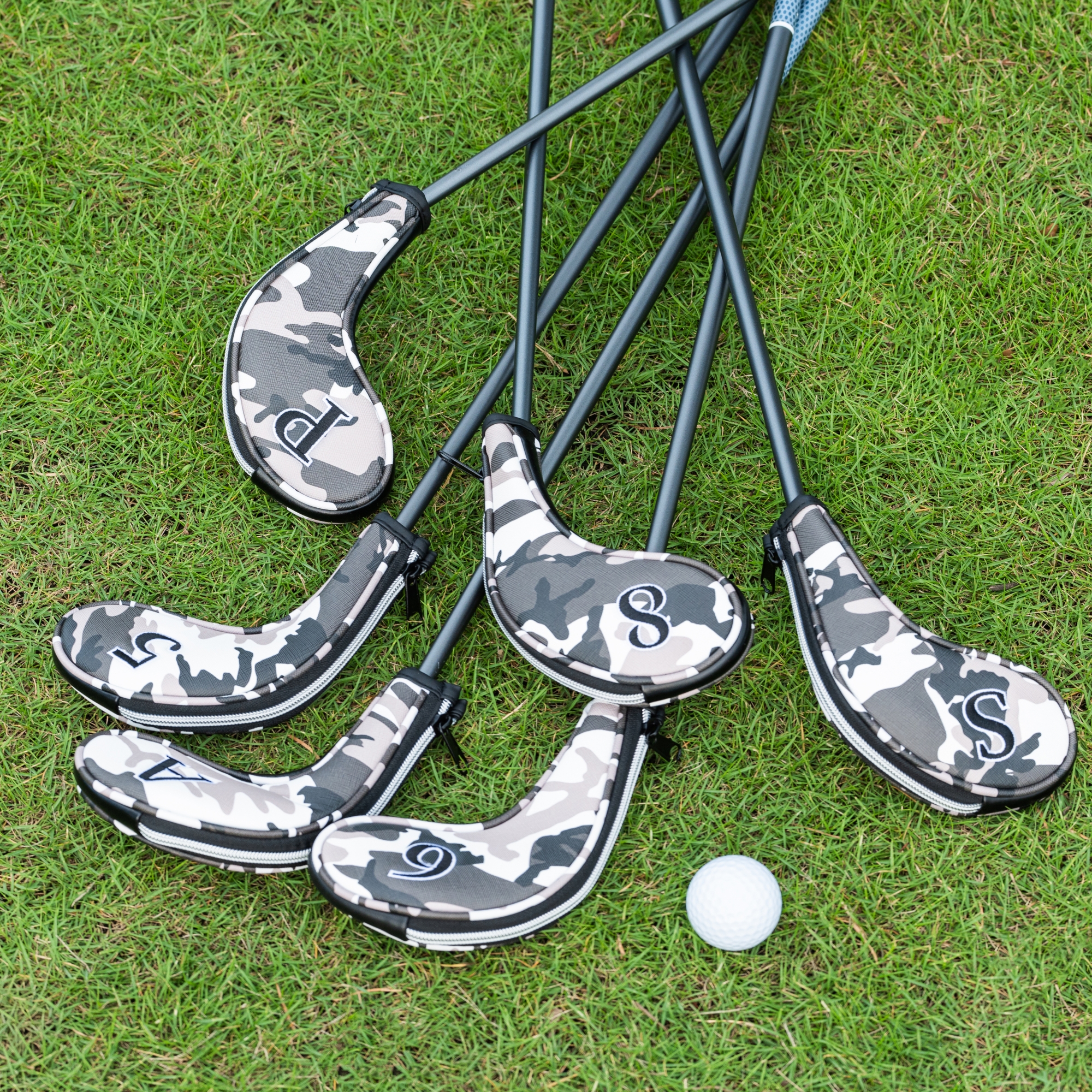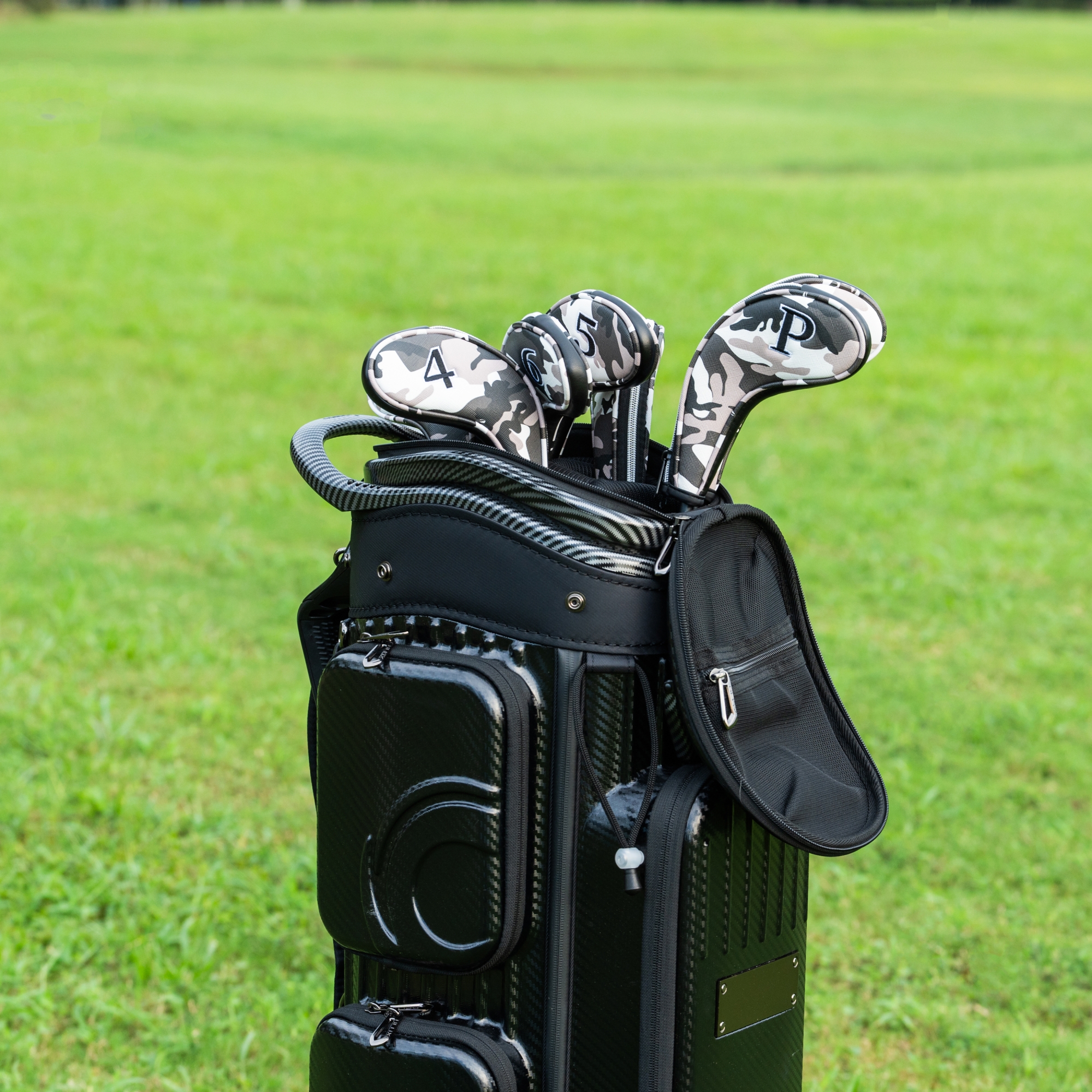 Camo style design: modern gray camouflage look adds sporty style and makes your golf bag stand out.