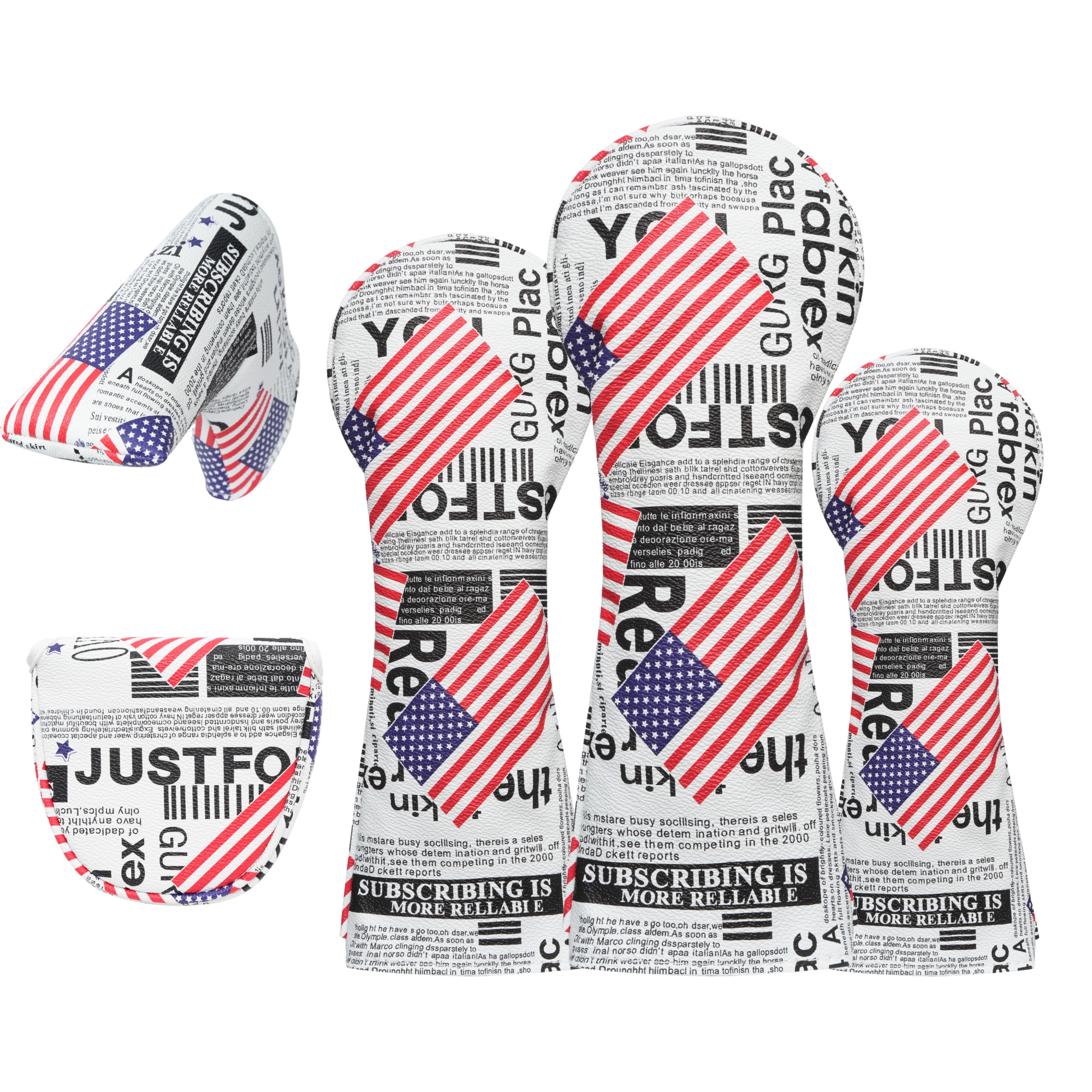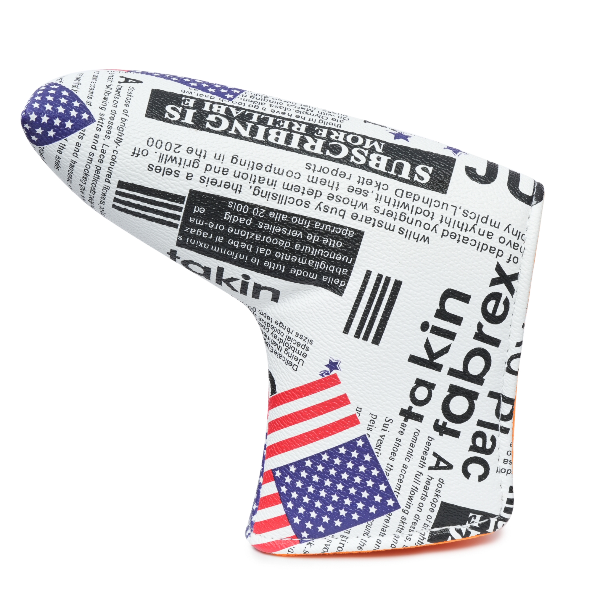 Vintage newspaper style: showcases a unique vintage newspaper-inspired design in crisp white, adding a classic and sophisticated look to your golf bag.